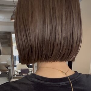 後頭部の丸みが低い位置にある前下がりのショートボブになります。