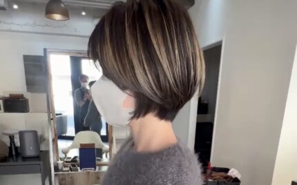 顔まわりまマッシュラインからレイヤーをつなげて、トップもレイヤーがしっかり入っています。